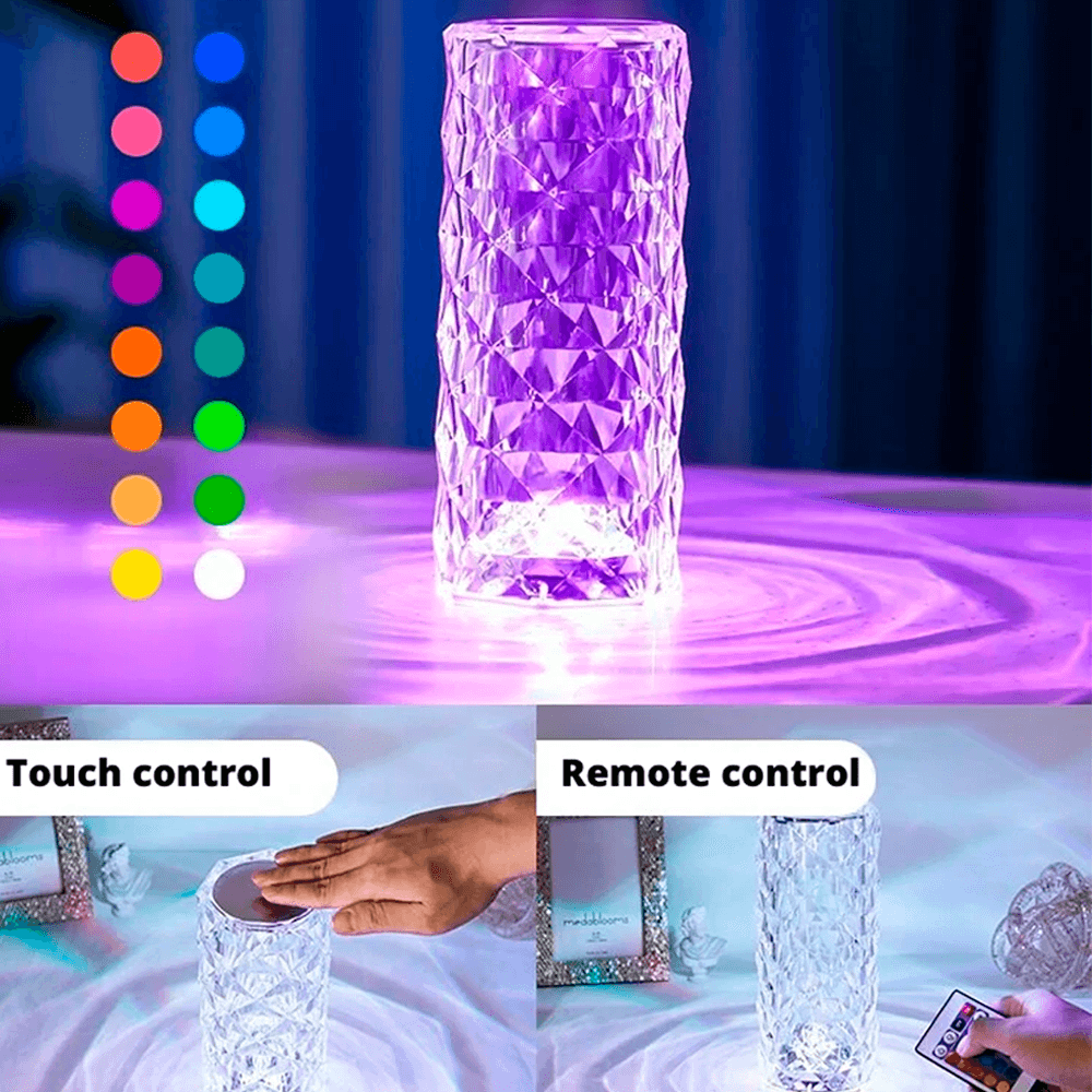 Lámpara de mesa con diamantes de cristal ,RGB 16 colores